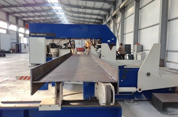 Двутавры выпускаются на конвейере, где автоматически режутся, собираются и свариваются под флюсом. Производственный процесс обеспечивает балкам полный провар, точные геометрические параметры и превосходный вид. Сварочный шов деталей контролируется ультразвуком.